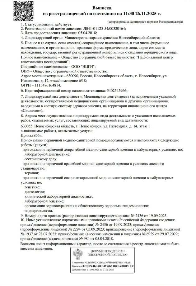 ДНК-лаборатория имеет полную аккредитацию и сертификацию. Наши заключения являются полными и развернутыми.